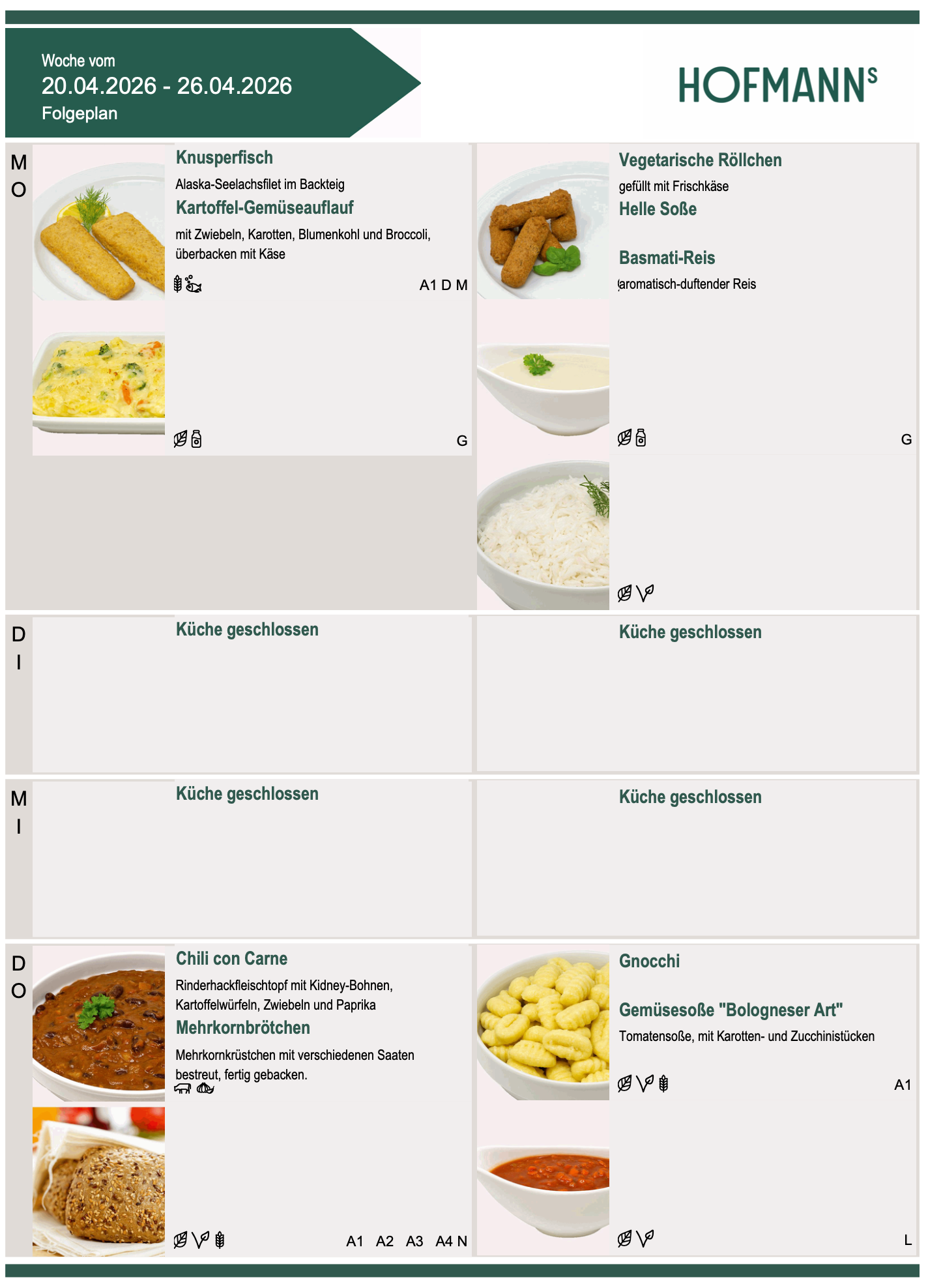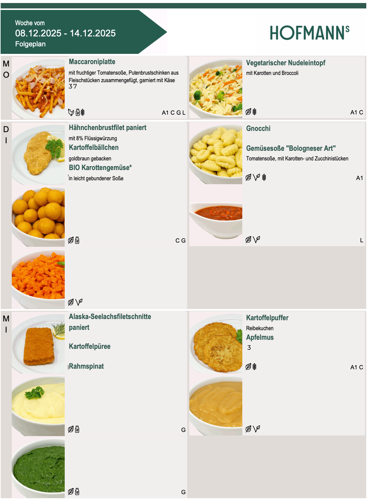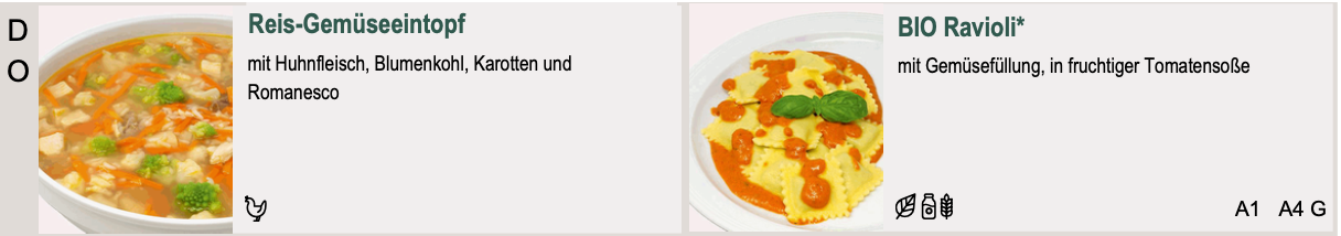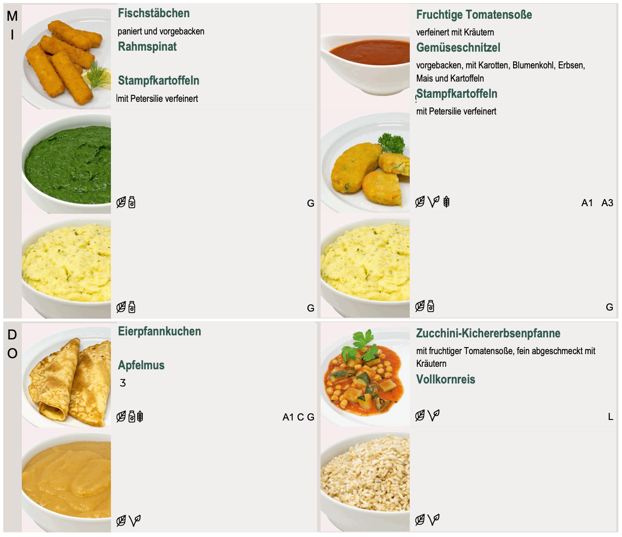 Abbestellungen und Änderungen sind am jeweiligen Tag bis 9.30 Uhr möglich.