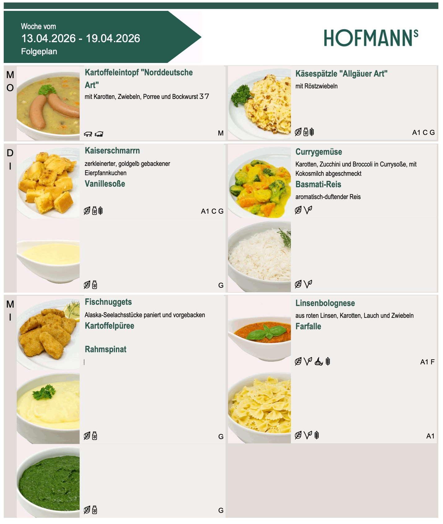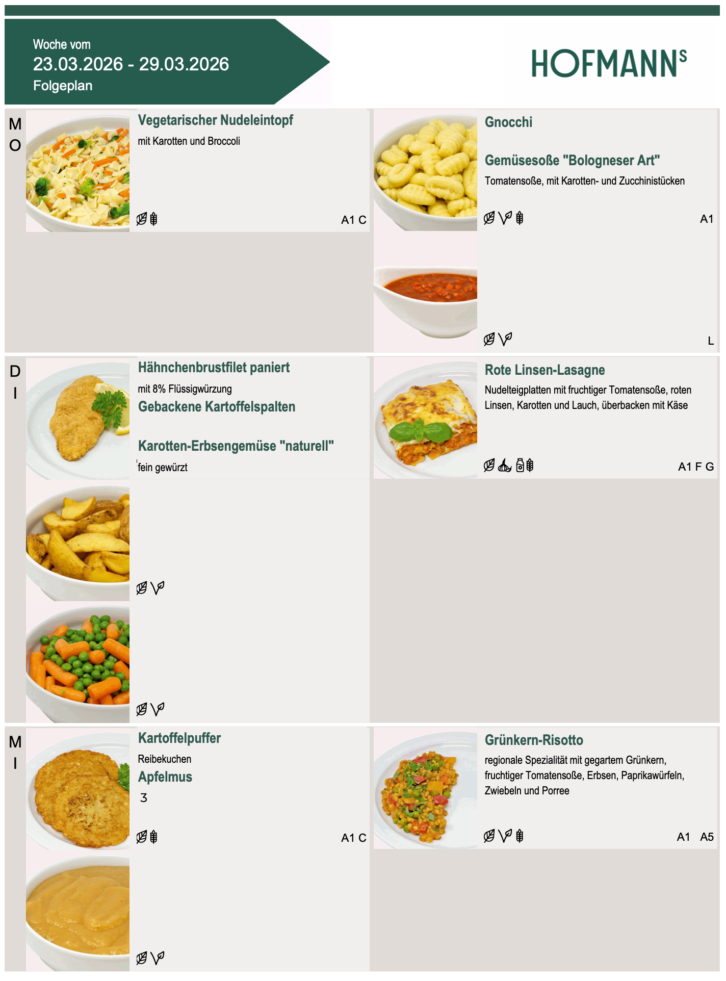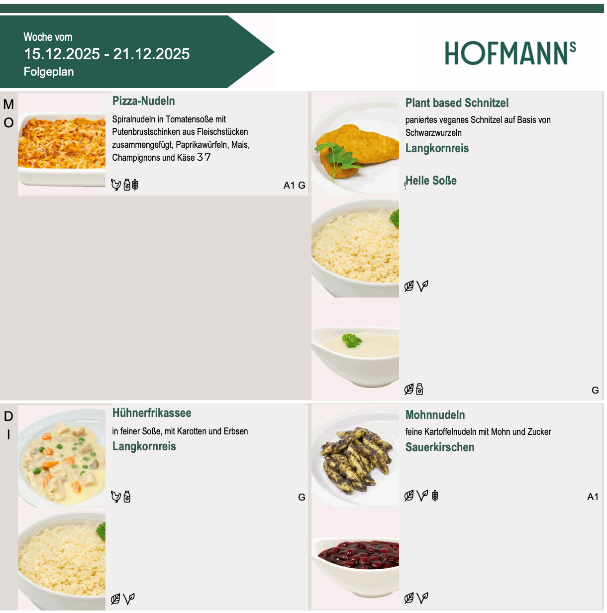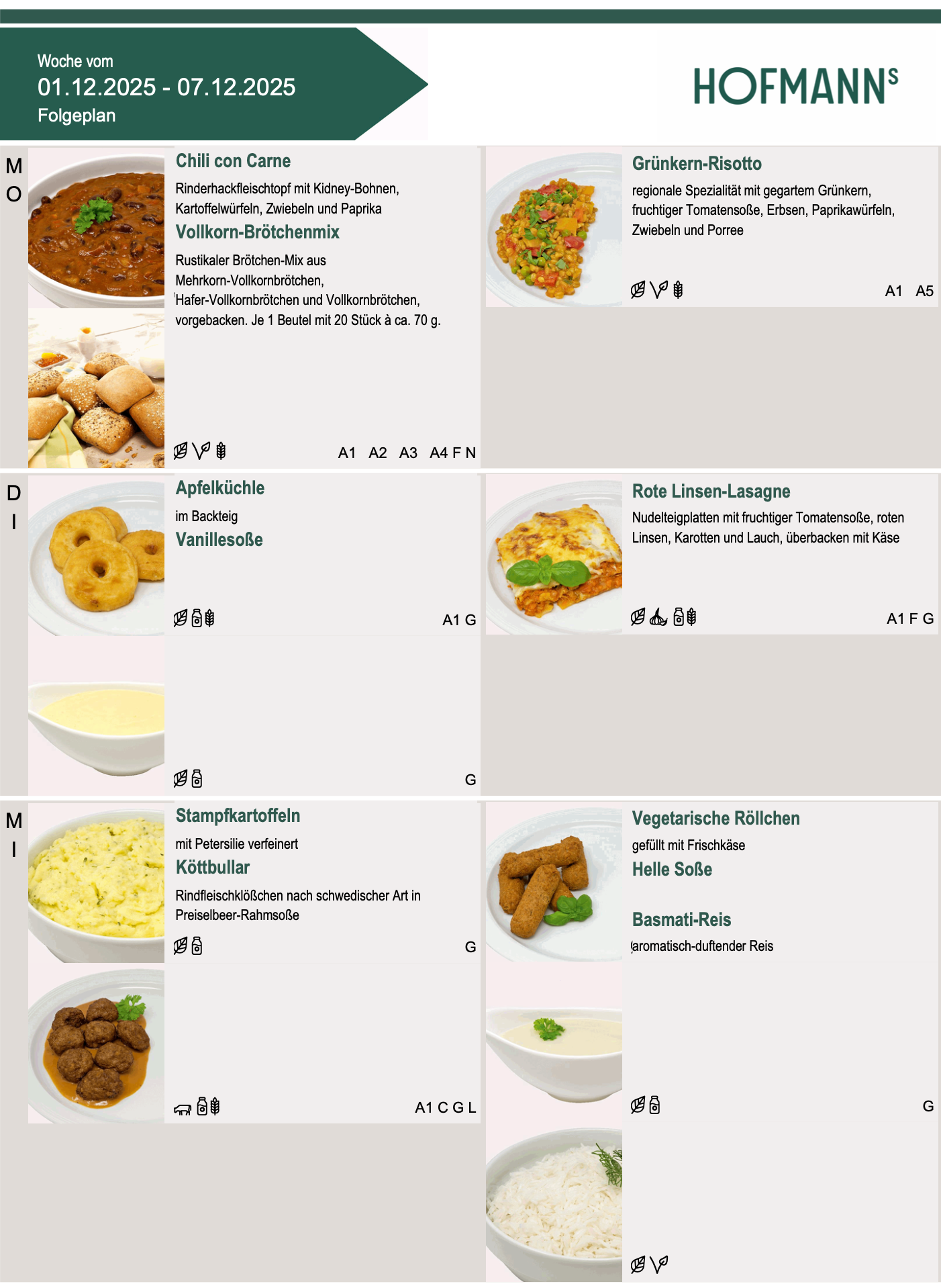 Abbestellungen und Änderungen sind am jeweiligen Tag bis 9.30 Uhr möglich.