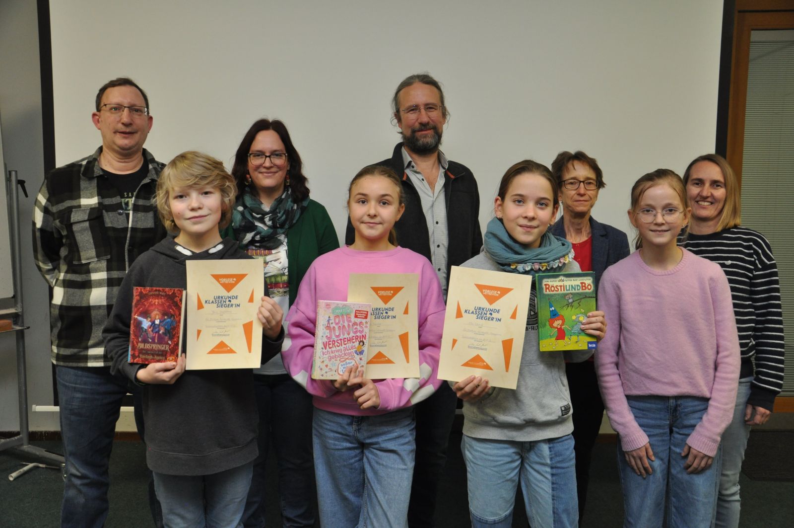 Mit einem spannenden Kunstkrimi aus der Buchreihe „Bildspringer“ überzeugte Joris Dießelberg (6c) die Jury und gewann den Vorlesewettbewerb am MGG. Für das Finale der Klassensieger hatten sich auch Greta Fleischer (6b) und Ella Schmid (6a) qualifiziert. Herzlichen Glückwunsch allen Teilnehmern! Vorjahressiegerin Clara Weber, Alexander Martin von der Mediathek sowie die Deutschlehrkräfte Ruth Jung, Claudia Schöninger, Petra Siegrist und Tobias Endres gehörten der Jury an. Als Schulsieger vertritt Joris Dießelberg das MGG beim Kreisentscheid. Wir drücken die Daumen!